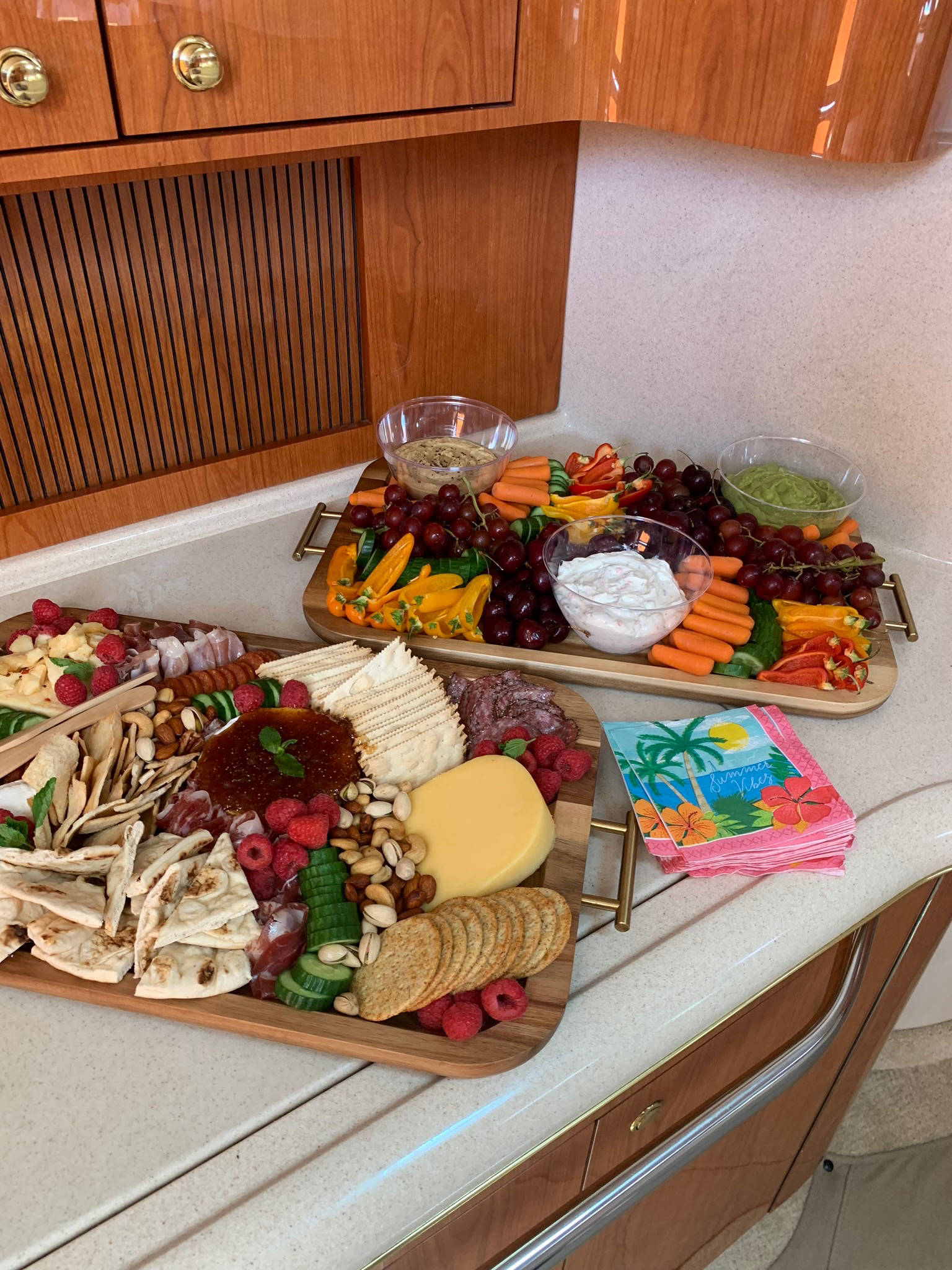 There's no shortage of places to sit, stand, dance and have fun. With a nice interior space with full kitchen, fridge and seating - you are sure to have a blast onboard Yeah Buoy.